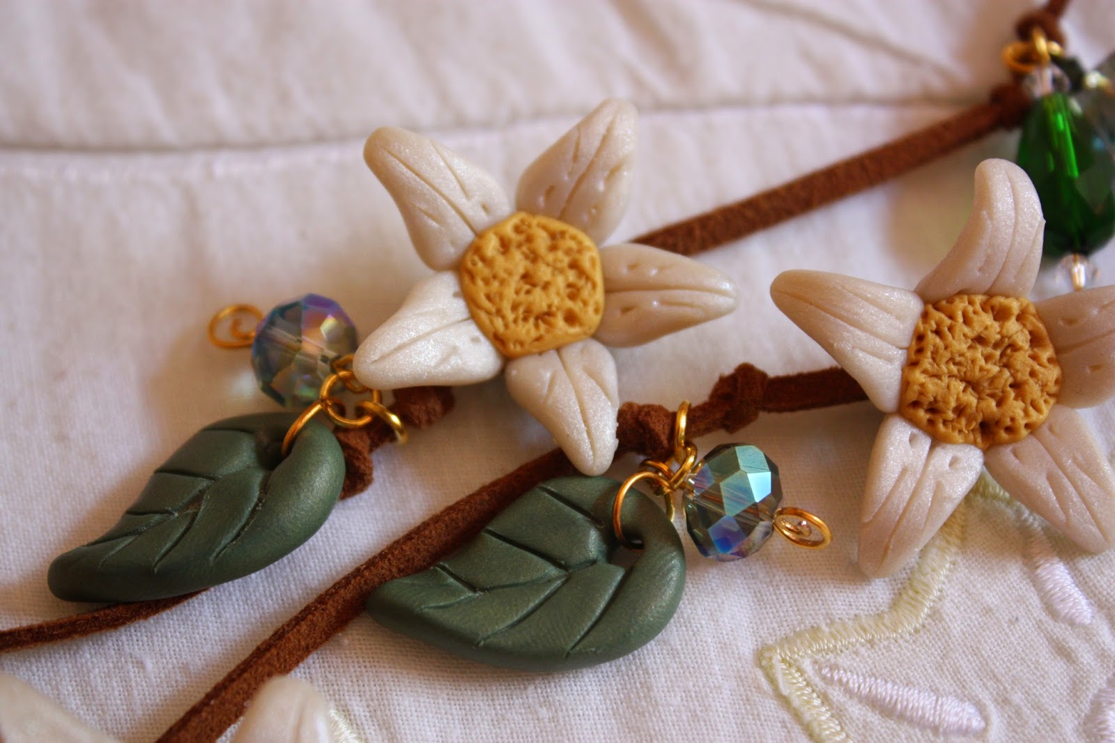 In the first time the little flowers and the leaves were meant to be the earrings matched with the necklace, but after I preferred to use them to enrich the necklace, which thanks to its colours really fits the equinoctial seasons, so spring and autumn. :)